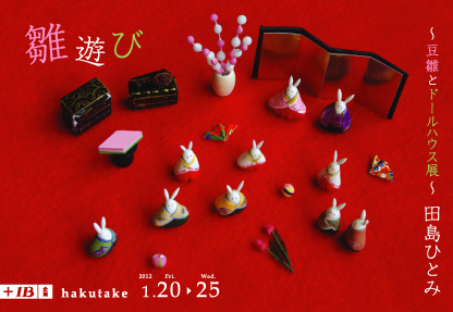 田島ひとみ 初旬にぴったりの、小さな小さな愛らしい 豆雛と兎雛、そして、楽しいドールハウスを 展示いたします。 一度見たら、その可愛らしさに夢中になって しまうはず。 是非、足をお運び下さい。お待ちして居ります。 |